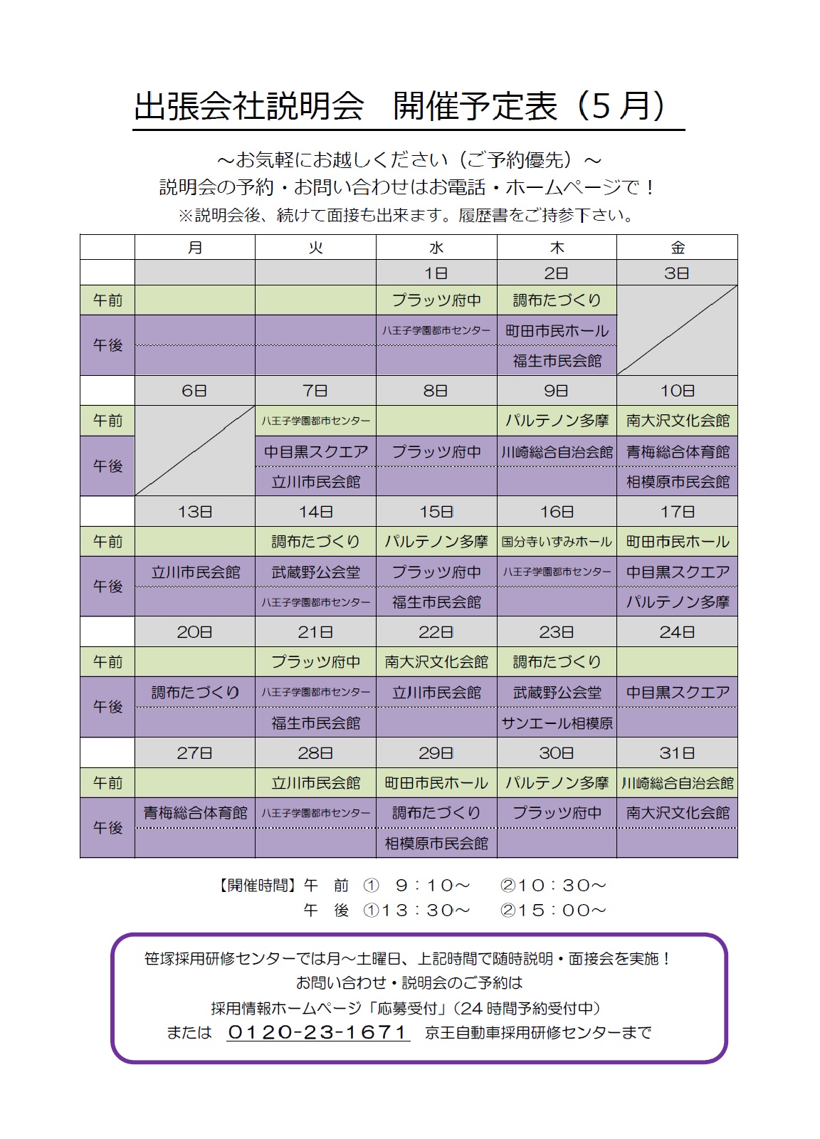 2024年4月 タクシー乗務員 出張会社説明会 開催予定表