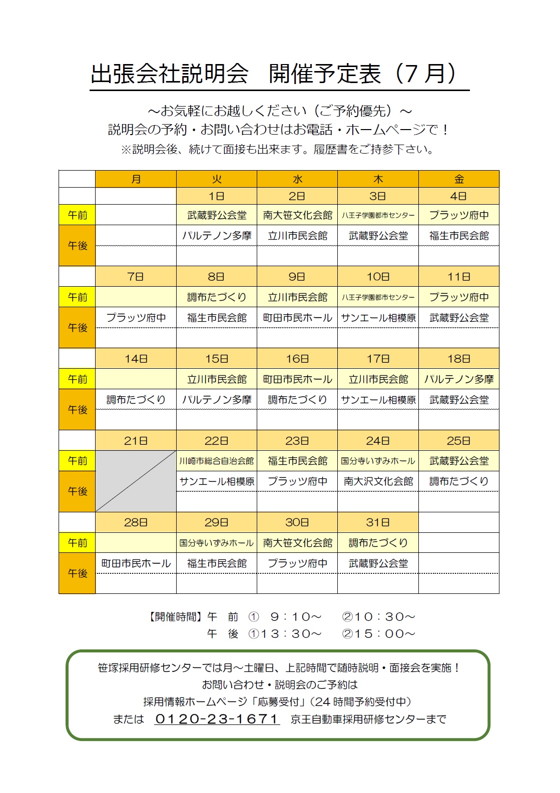 2025年6月 タクシー乗務員 出張会社説明会 開催予定表