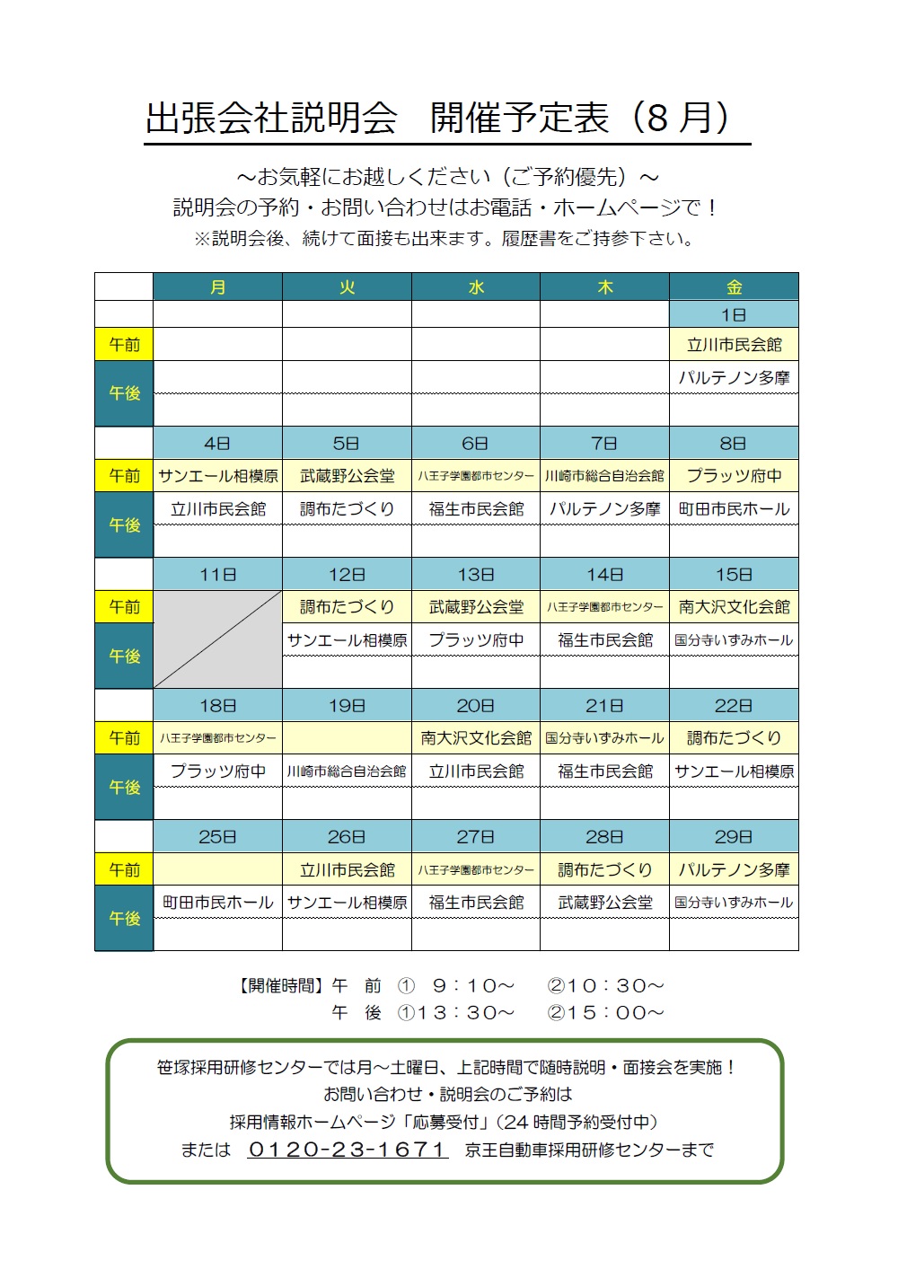 2025年7月 タクシー乗務員 出張会社説明会 開催予定表